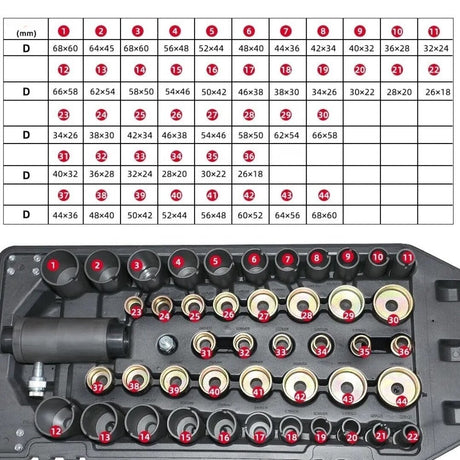 2/3 įrankių dėklas: stabdžių stūmoklio sustumėjų rinkinys | 50 vnt. (1102)