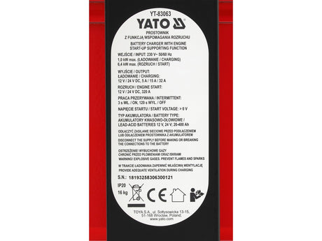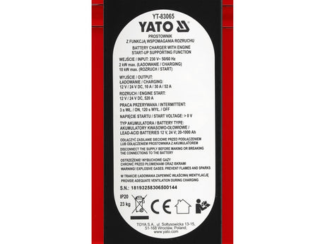 Įkroviklis su paleidėju | 12/24V | 20-1000A (YT-83065)