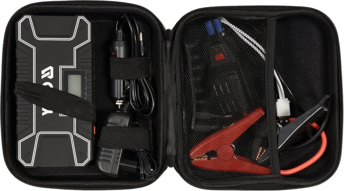 Universalus pakrovėjas YATO YT-83082 su 500A paleidimo funkcija - tai multifunkcinis nešiojamas PRO+ klasės prietaisas su LCD ekranu, integruotu ryškiu LED apšvietimu ir galimybe nustatyti SOS signalą, apjungiantis išorinės baterijos (PowerBank), maitinimo šaltinio ir avarinio automobilių paleidėjo funkcijas. Tvirtas korpusas. Prietaisas turi apsaugą nuo trumpojo jungimo, perkrovimo ir savaiminio išsikrovimo. Tinka iki 4L benzininiams ir dyzeliniams varikliams - lengviesiems automobiliams, motociklams, motorinėms valtims, keturračiams ir pan.