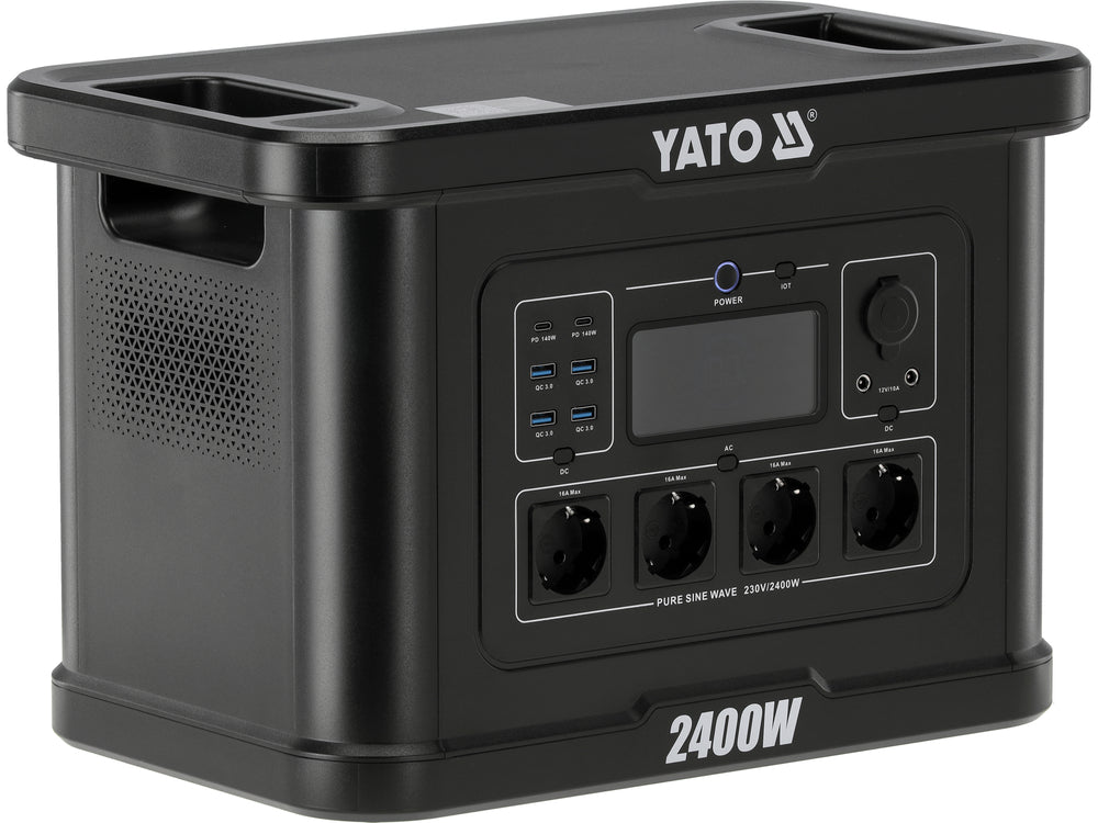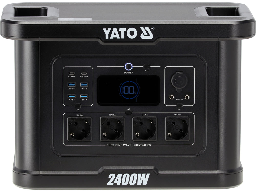 Portable YATO power station with a very large capacity 2232 Wh and power of 2400 W, equipped with a modern LiFePO4 battery, is a reliable and long-lasting source of energy designed for a wide range of applications. The lithium-iron-phosphate technology ensures high cell life, resistance to deep discharges, and stable operating parameters even under prolonged load. Such a large capacity allows for safe power supply for devices with low power consumption, such as lighting or mobile electronics, as well as tools and selected household appliances, without the need for frequent recharging of the station.