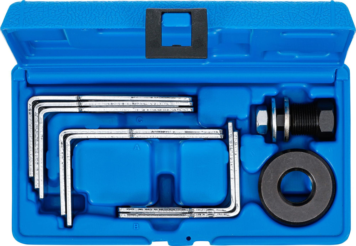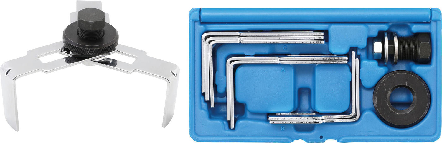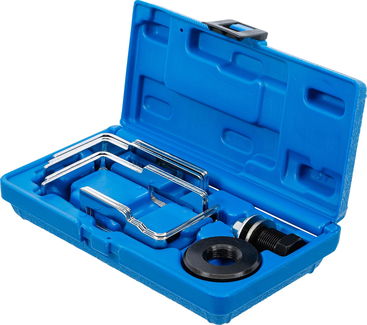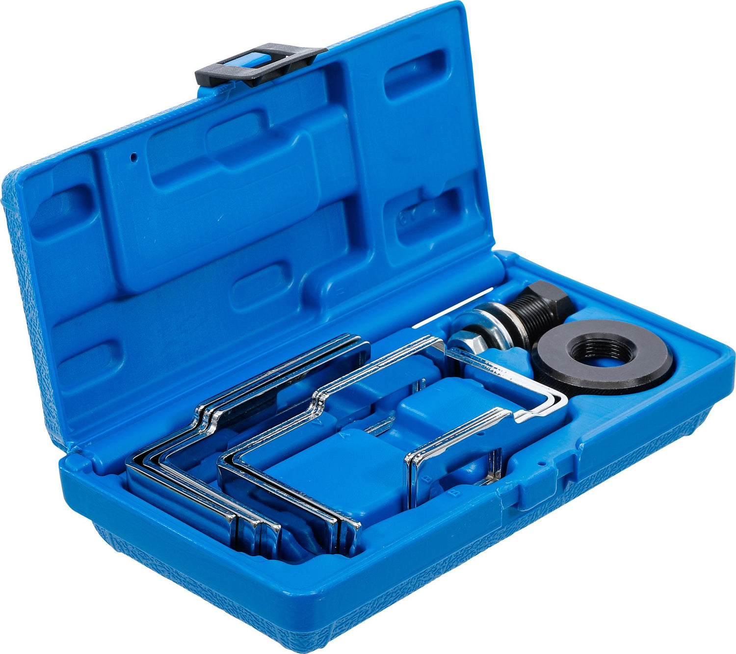5 different shaped pairs of clamping arms allow use on a variety of fuel tanks