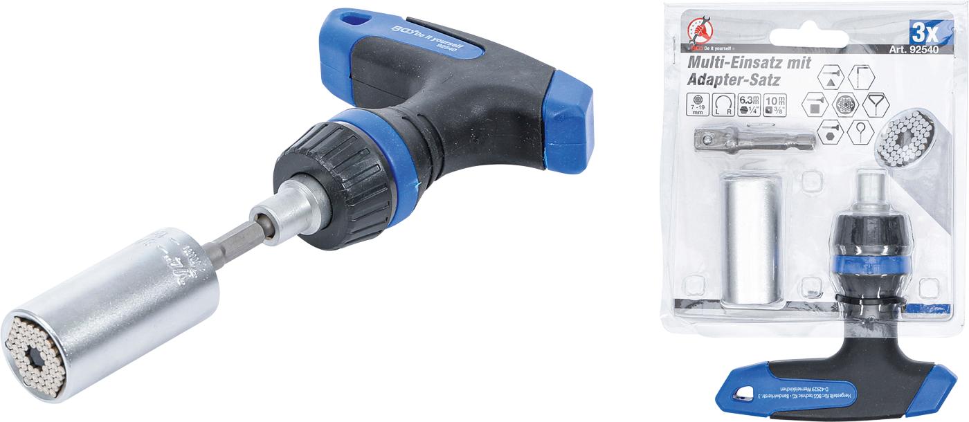Terkšlinė rankena su daugiafunkcine galvute | 10 mm (3/8") | 7 - 19 mm | 3 vnt. (92540) yra užsakomoji prekė, ją išsiųsime per 3-4 savaites.