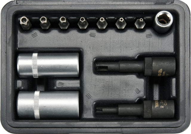 it includes 12 and 15 mm octagonal sockets, 2.2 and 3.2 mm sockets to flat drains,