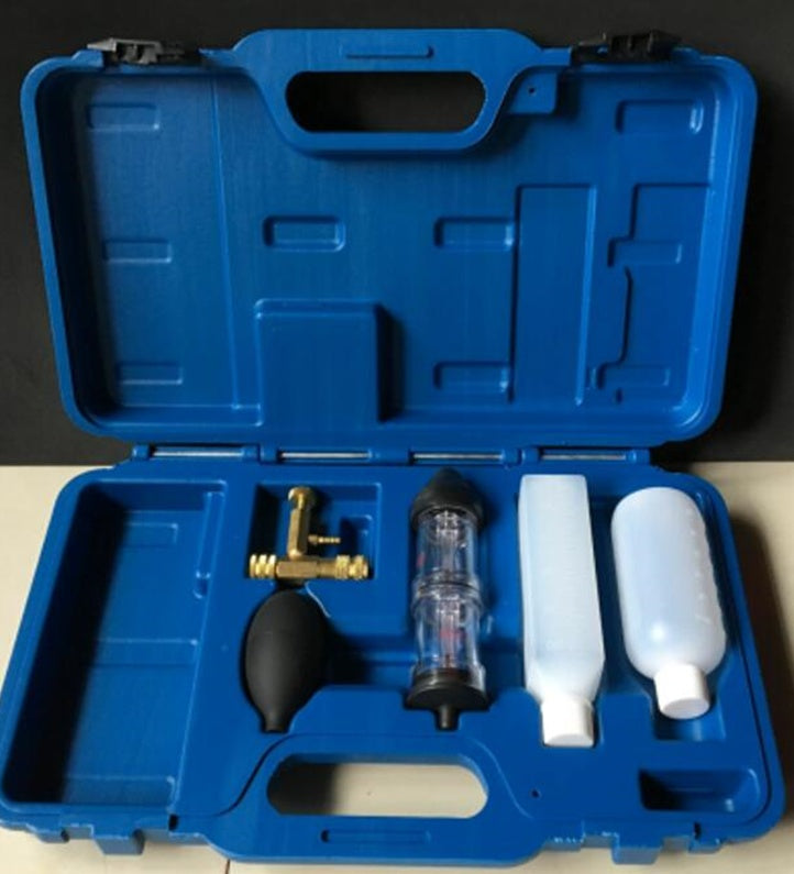Tester fluid changes from blue to green or yellow if CO2 is present in coolant