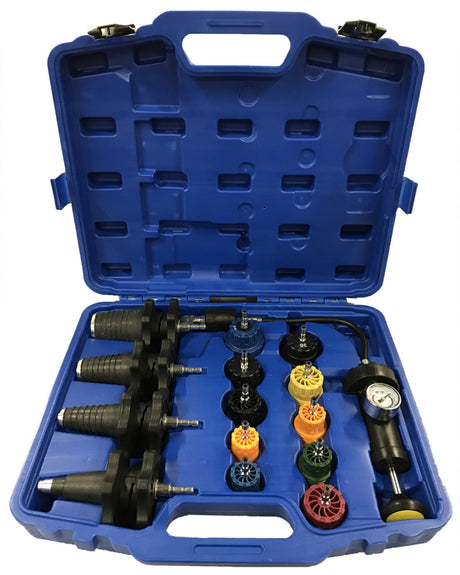 Radiatoriaus sistemos slėgio bandymo ir užpildymo įrankių rinkinys | 13 vnt. (74405)