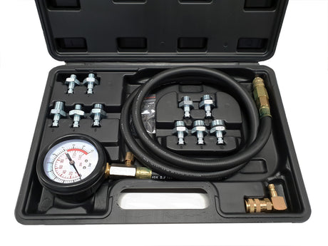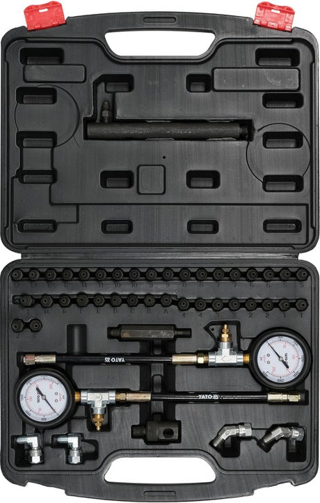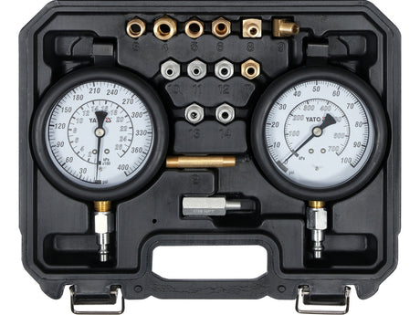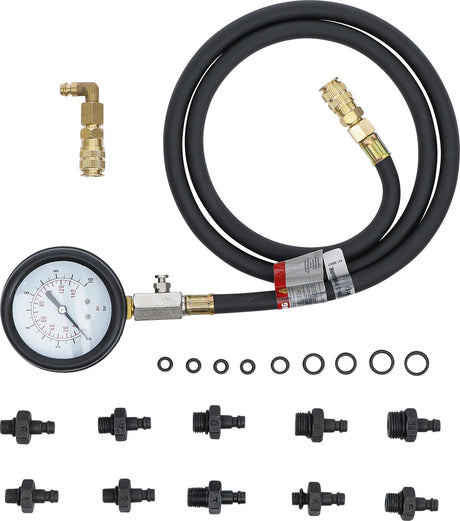 Kuro slėgio / spaudimo matuoklis | su adapteriais | variklio įpurškimo sistemoms (YT-73024)