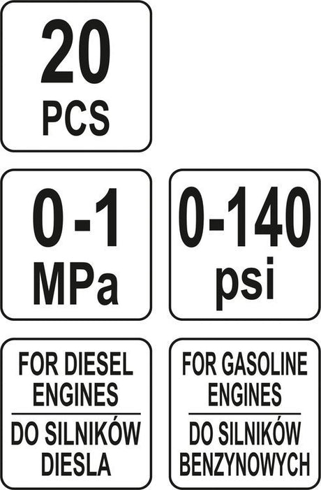Kuro įpurškimo sistemos testeris | 20 vnt. (YT-73025)