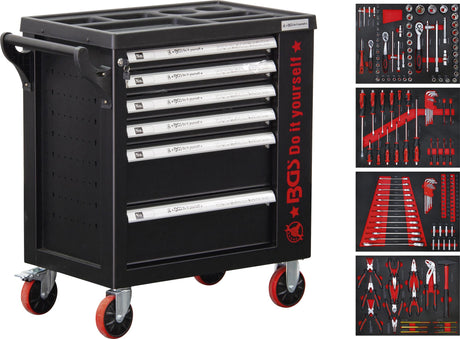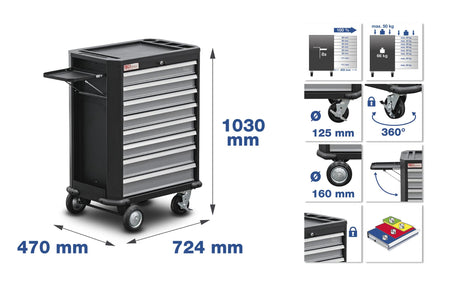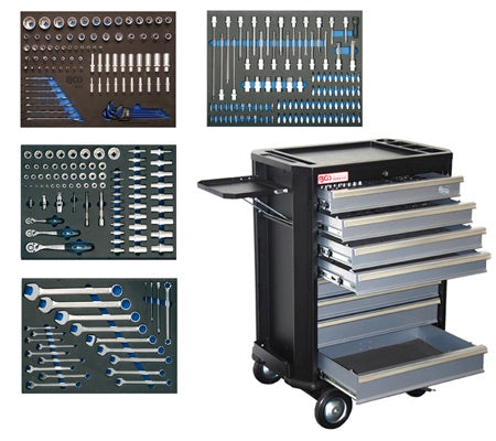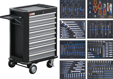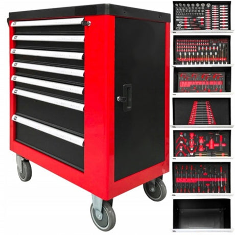 Įrankių spintelė ant ratukų | su įrankiais | 7 stalčiai | 1 šoninės durys | 250 vnt. (6058)