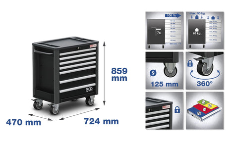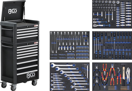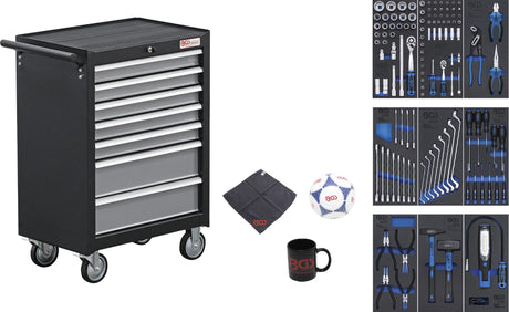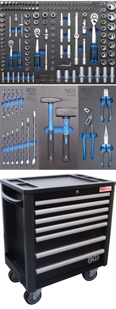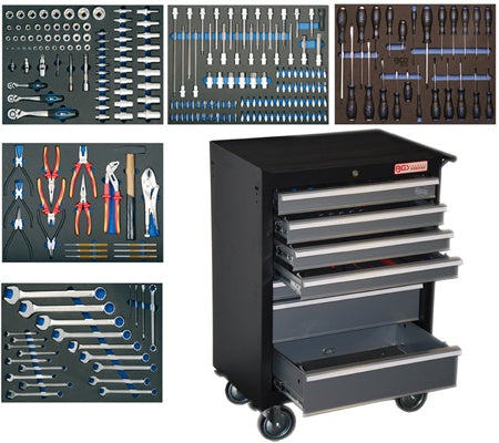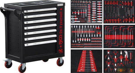 Įrankių spintelė su ratukais | 7 stalčiai | žemesnis aukštis | su 209 įrankiais (4140)