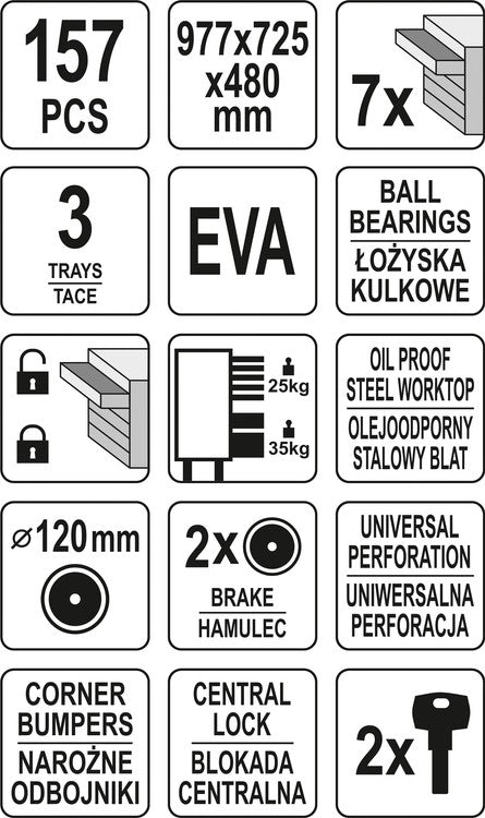 Įrankių spintelė | 157 įrankiai | 7 stalčiai (YT-55308)