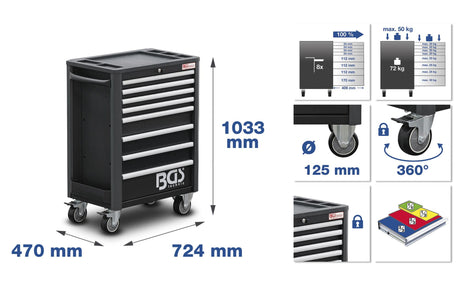 Vežimėlis įrankiams | 8 stalčiai | tuščias (4100)