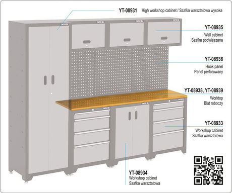 Įrankių saugojimo sistemos derinys | Workshop | Medinis stalviršis | 8 Komponentai (80160)