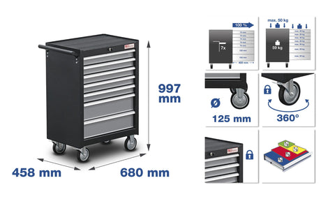 Įrankių spintelė plati XL | 7 stalčiai | tuščia (4205)