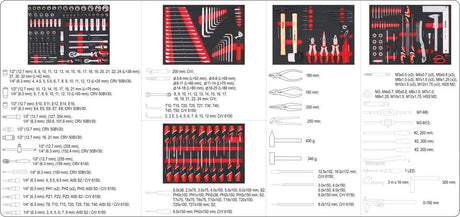 Įrankių spintelė | 7 stalčiai | su 263 įrankiais (4207)