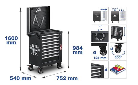 Įrankių spintelė su ratukais | 7 stalčiai | Su variklio fiksavimo įrankiais (4115)