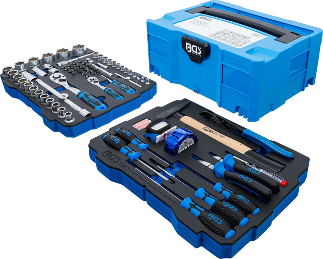 Galvutės, plaktukas, replės, atsuktuvų rinkinys | 6,3 mm (1/4") / 12,5 mm (1/2") | BGS systainer® | 77 vnt. (3357)