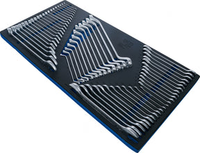 the tools are protected in the hard foam tray and are stowed in the recesses in a non-slip manner