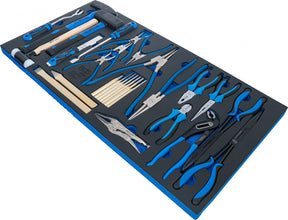 the tools are protected in the hard foam tray and are stowed in the recesses in a non-slip manner