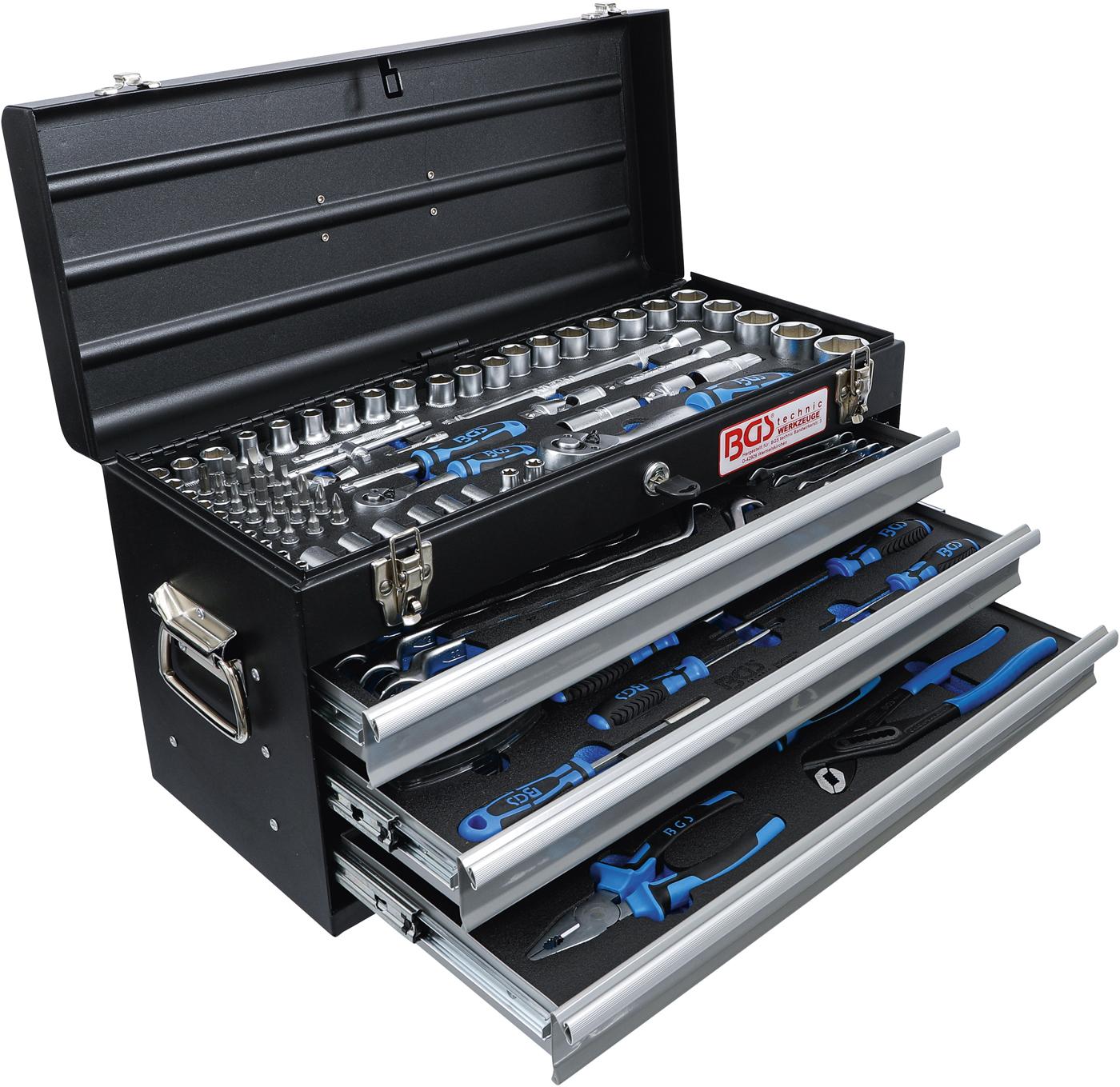 Įrankių rinkinys su metaline dėže | 3 stalčiai | 143 įrankiai (3318)
