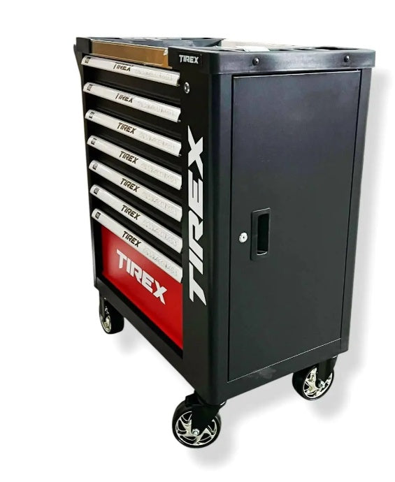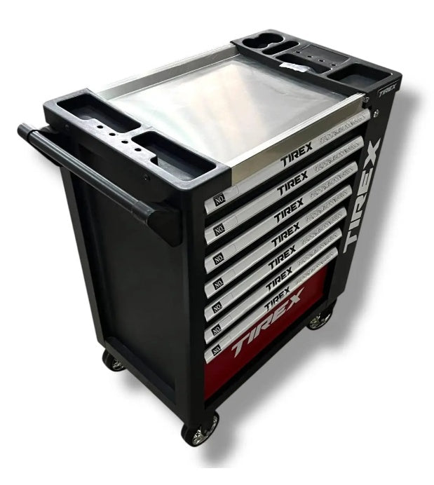 Profesionalus įrankių vežimėlis TIREX – tai paruoštas sprendimas pilnam dirbtuvių, autoserviso ar garažo aprūpinimui. Komplekte – 322 aukštos kokybės įrankiai, išdėstyti 7 patogiuose stalčiuose su įdėklais, užtikrinančiais nepriekaištingą tvarką.