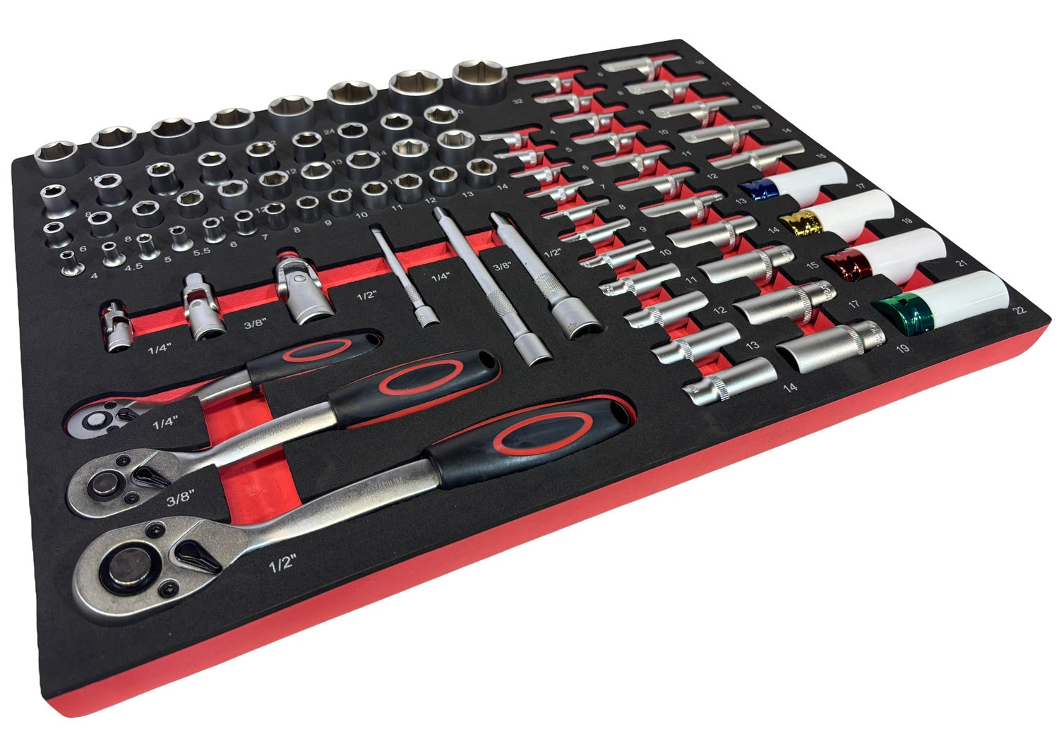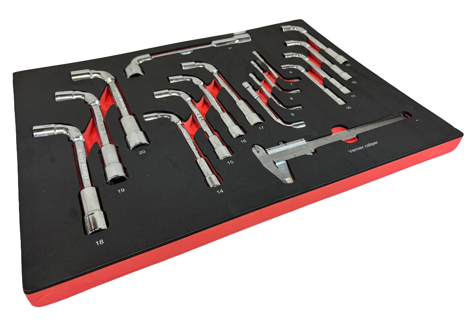Vidinis išdėstymas: įdėklai / paminkštinimai įrankių organizavimui