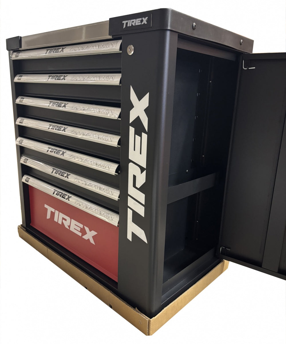 Spintelė TIREX apgalvota iki smulkmenų: ergonomiškas aukštis, patogus stalčių išdėstymas, mobilumas dėl ratų su stabdžiais, taip pat įrankiai iš chromo-vanadžio plieno (Cr-V), užtikrinantys tikslumą ir ilgaamžiškumą. Idealus pasirinkimas profesionaliems meistrams ir reikliems mėgėjams.