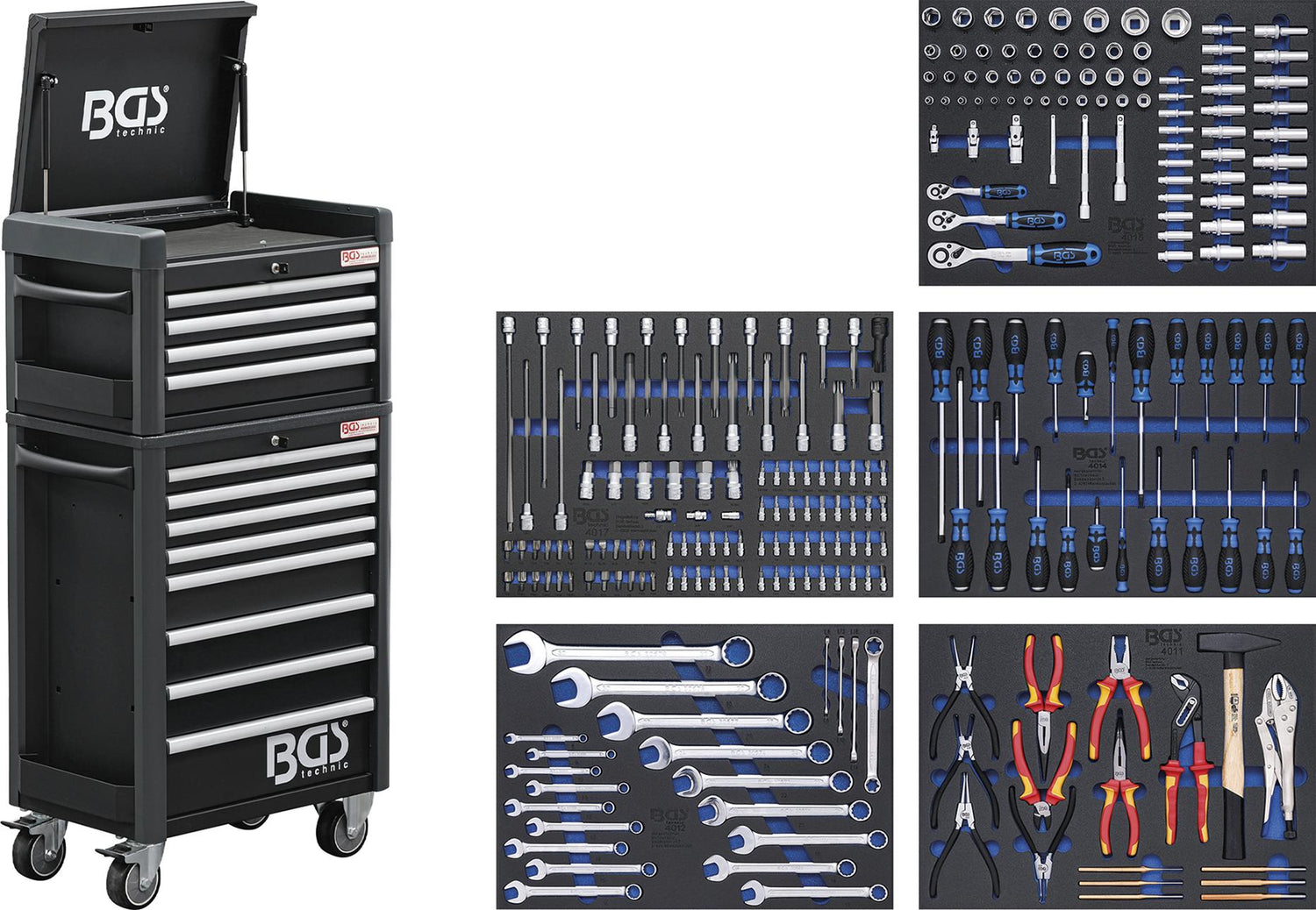 1 x įrankių dėklas BGS Technic 4011 | 3/3 | įvairūs įrankiai | CrV | DIN60900 | 567x408x32MM | 17VNT.