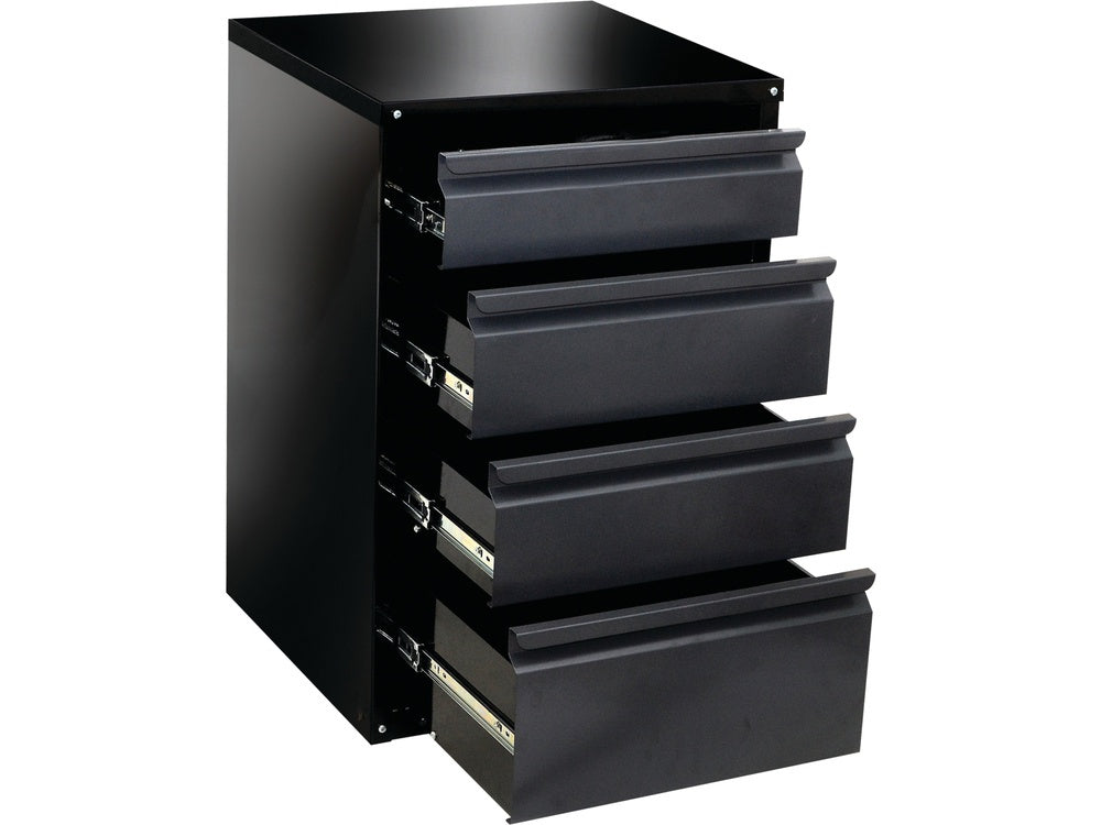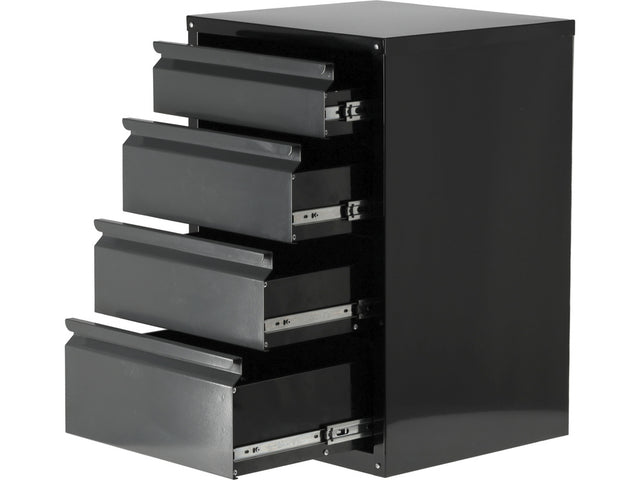 A workshop cabinet that helps keep order in your garage, workshop or car service. The cabinet is made of black painted steel sheet. The elegant finish makes it fit into any workshop. It allows you to create a comfortable workplace and ensures safe storage of tools. The cabinet consists of a body in which there are four solid drawers on ball bearing slides. The cabinet must be assembled by yourself.