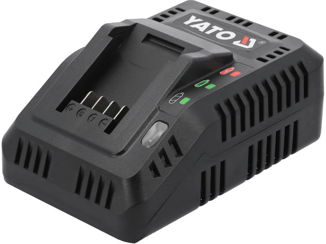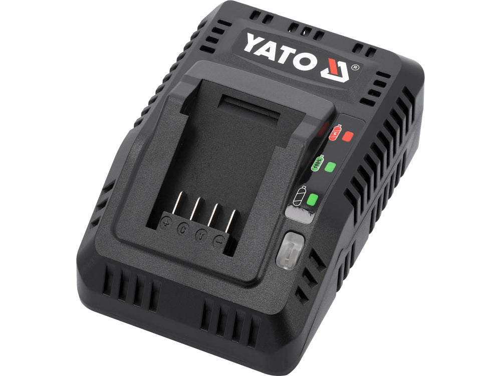 18V sistemos akumuliatorių kroviklis YATO YT-828498 su krovimo indikatoriumi skirtas šiems akumuliatoriams: