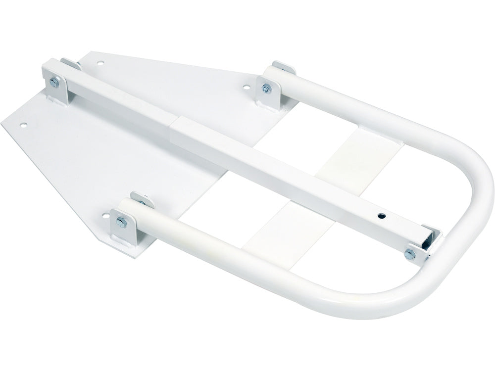 Foldable "horseshoe" parking lock locked with a padlock, for effective protection of spaces against unauthorized entry or parking of vehicles. Provides convenience and safety in managing access to designated areas. Allows temporary blocking of parking spaces or entry, e.g. to private property, pedestrian and vehicle routes, green areas, flood embankments, promenades.