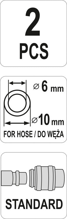 Greitos jungtys žarnai (kištukai) su spyruoklėmis 6x10 mm, 2 vnt. (YT-24103)