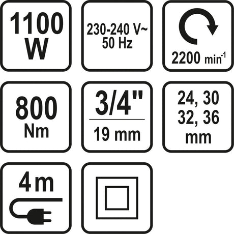 Elektrinis smūginis veržliaraktis su rinkiniu | 20 mm (3/4") | 800Nm/1100W (57097)