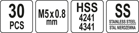 Sriegio remonto rinkinys | M5 x 0.8 | 30 vnt. (YT-17631)