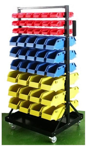 Sandėliavimo 90 vnt.dėžučių konteineris su padėklu ir ratukais 1300x650x575mm (B005)