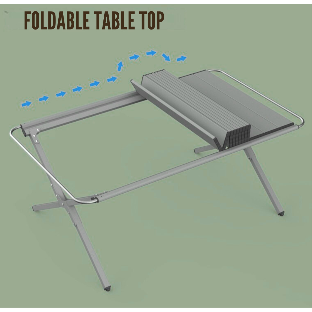 Patogus, stilingas, tvirtas ir funkcionalus sulankstomas stovyklavimo staliukas - prekystalis – puikus pasirinkimas tiek išvykoms į gamtą, tiek prekybai lauko sąlygomis ar renginiuose. Šis universalus ir kokybiškas baldas pasižymi lengva konstrukcija, greitu surinkimu bei kompaktišku dizainu, todėl jį patogu transportuoti ir sandėliuoti.