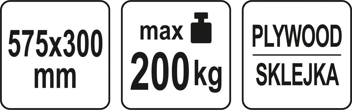 Trolley - transport platform made of wooden plywood. The working surface is covered with a layer of anti-slip material on its entire surface. It has four monolithic, swivel wheels made of resistant black polypropylene. Wheel diameter - 75 mm. Platform dimensions - length 575 mm, width 300 mm, thickness 18 mm, height on wheels 110 mm. It has a cut-out hole for easy carrying. Platform load capacity 200 For transporting small loads, e.g. boxes, furniture, household appliances, weighing up to 200 kg