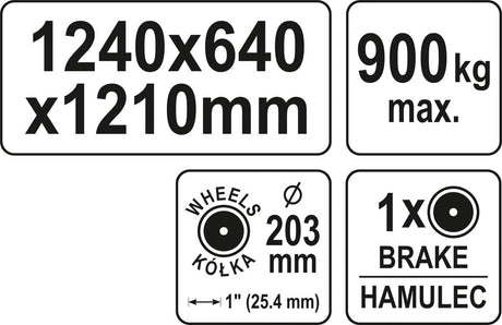 Transportavimo vežimas / platforma | 1240 x 640 x 1210 mm / iki 900 kg (YT-37430)