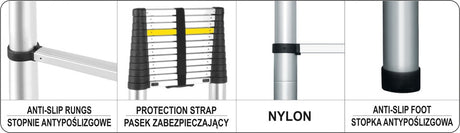 Kopėčios aliuminės teleskopinės | 13 laiptelių | 3.8 m (17701)