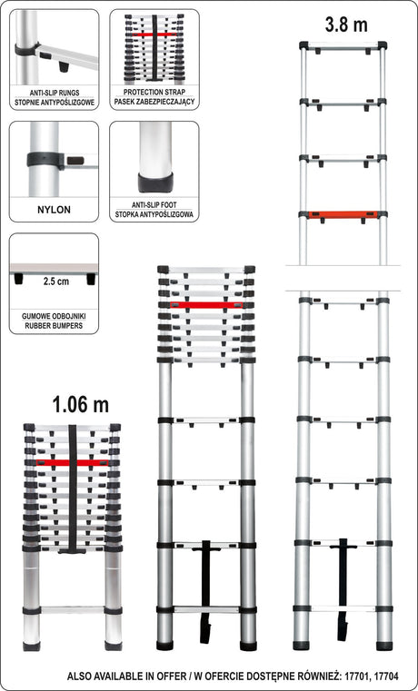 Kopėčios aliuminės teleskopinės | 13 laiptelių | 3.8 m (17702)