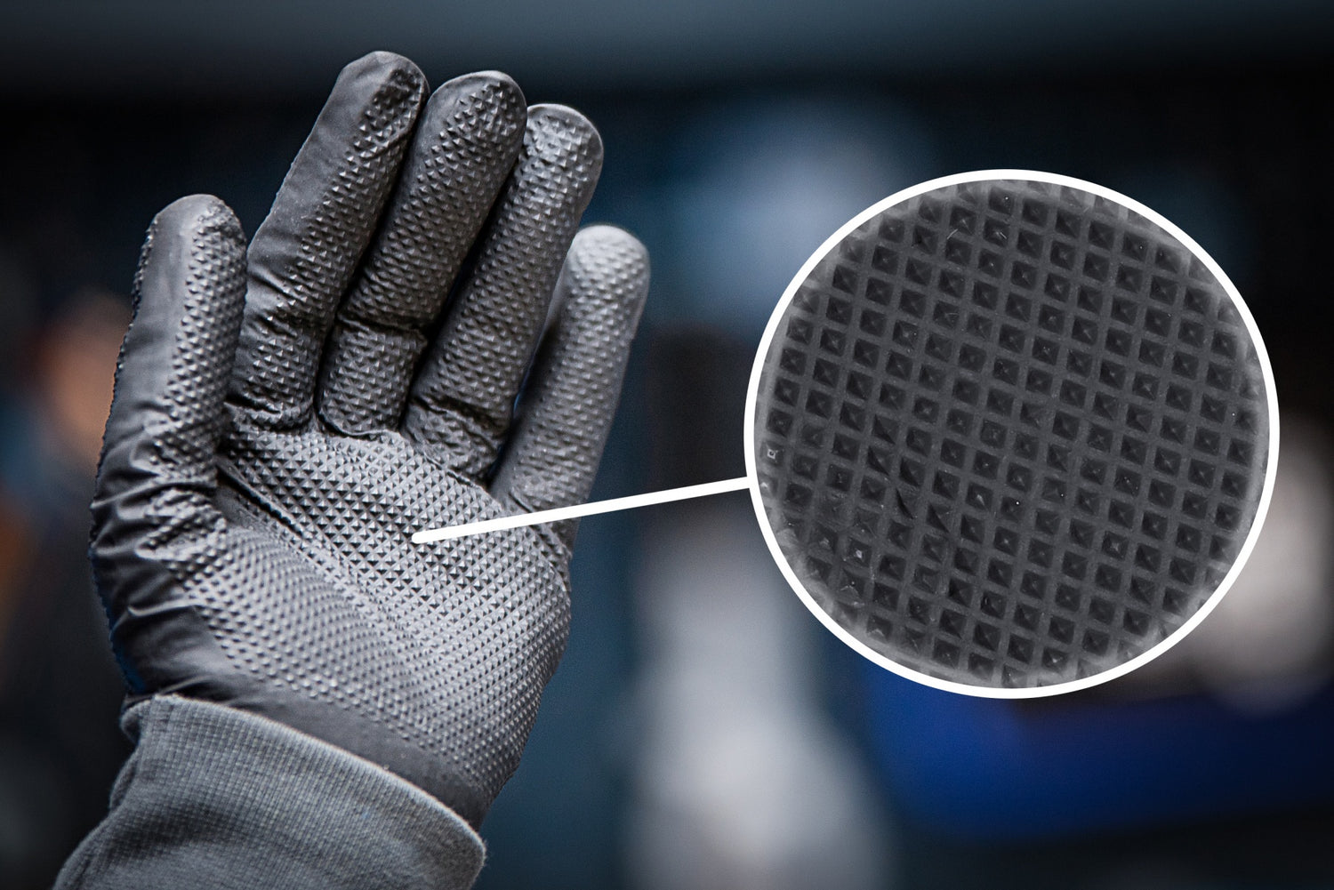 fully textured palm surfaces for extra grip even when wet and moistened