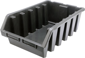 Storage container with dimensions 33.3x50x18.7 cm. Made of plastic in black. The container can be stacked and used with tool boards.