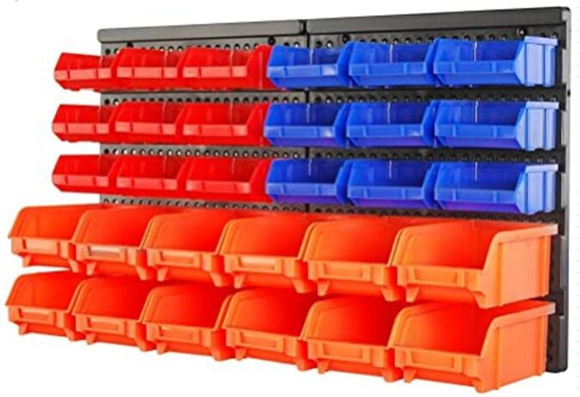 Garage or Tool Shed ; Includes 18 small drawers, and 12 large drawers with 2 mounting board and storing and organizing tool accessories and small parts from screws, nuts and bolts, screwdrivers, hammers and pliers, fishing tackle, office supplies, to crafting materials, beads etc.