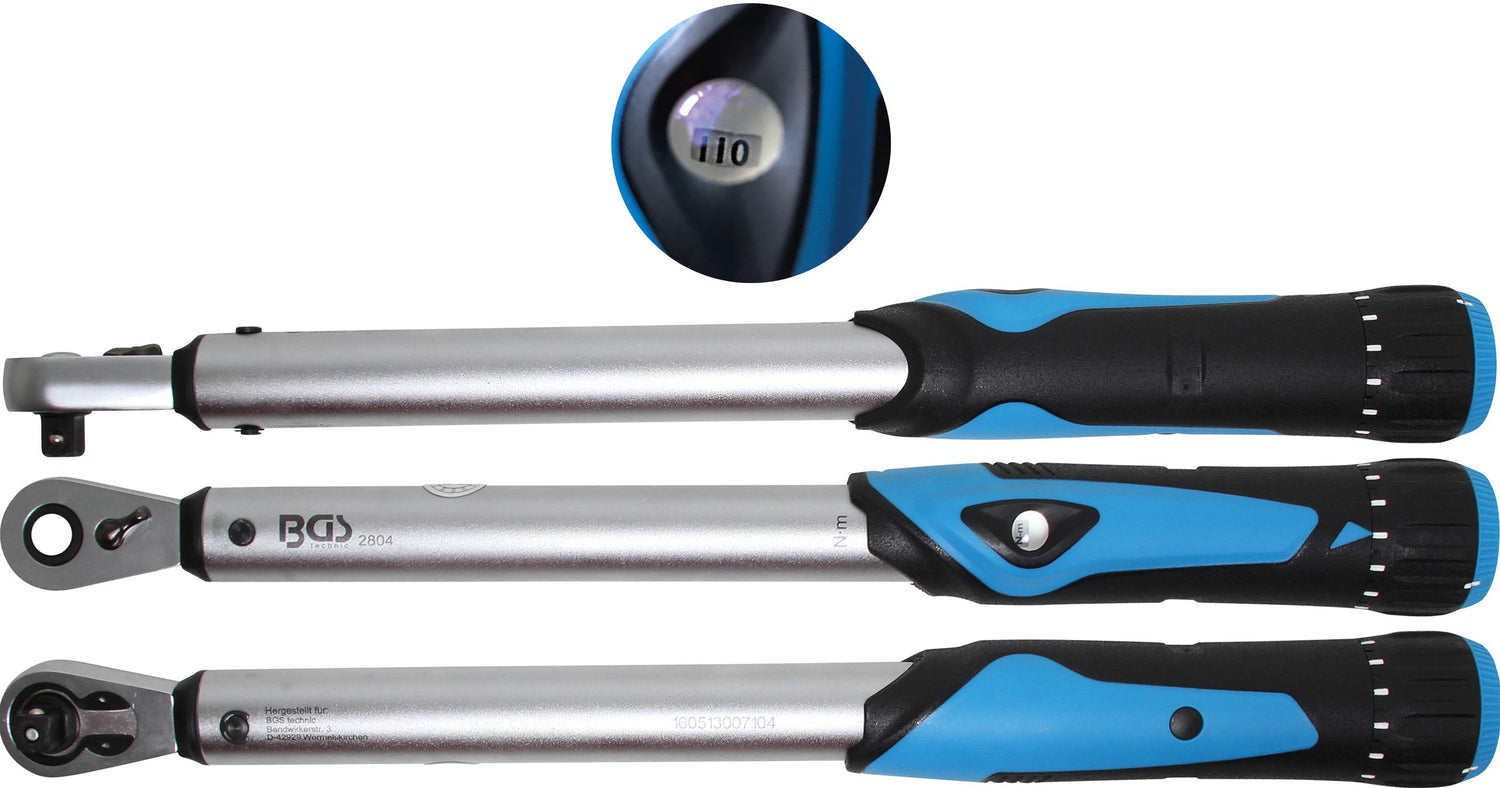Dinamometrinis reversinis terkšlinis raktas BGS Technic 2804 - tai PRO+ klasės įrankis, skirtas tiksliam sukimo momentui taikyti sukant varžtus ir veržles. Sukimo momentas nustatomas patogios rankenėlės su skale pagalba. Įrankis tinkamas sukti varžtus ir veržles su dešininiais sriegiais. Dinamometrinis raktas pateikiamas pakabinamoje plastiko įmautėje. Šis įrankis turi kalibravimo sertifikatą.
