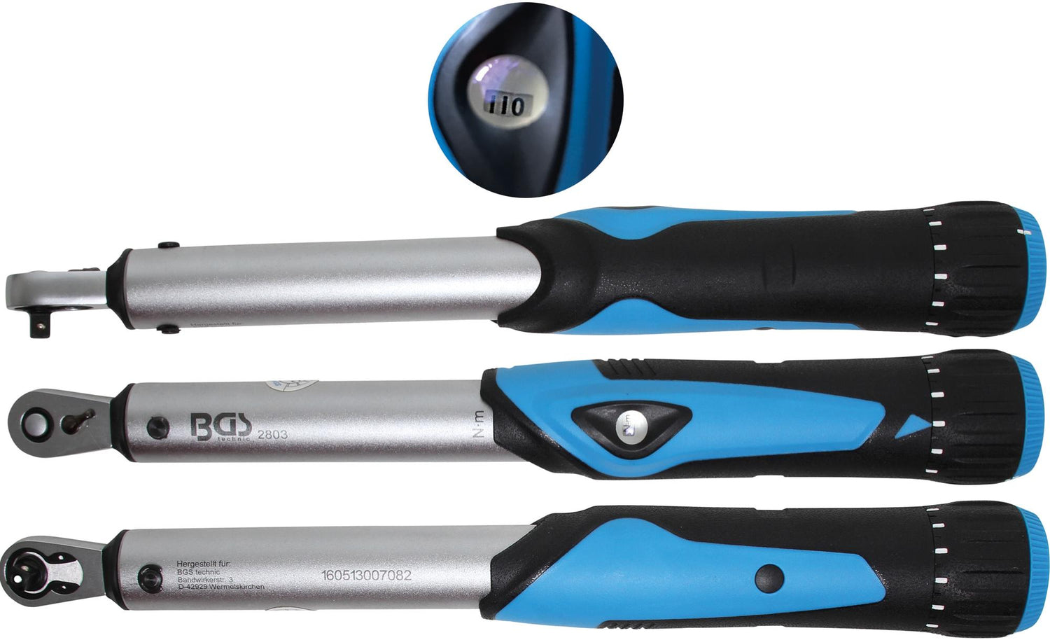 Dinamometrinis reversinis terkšlinis raktas BGS Technic 2803 - tai PRO+ klasės įrankis, skirtas tiksliam sukimo momentui taikyti sukant varžtus ir veržles. Sukimo momentas nustatomas patogios rankenėlės su skale pagalba. Įrankis tinkamas sukti varžtus ir veržles su dešininiais sriegiais. Dinamometrinis raktas pateikiamas pakabinamoje plastiko įmautėje. Šis įrankis turi kalibravimo sertifikatą.