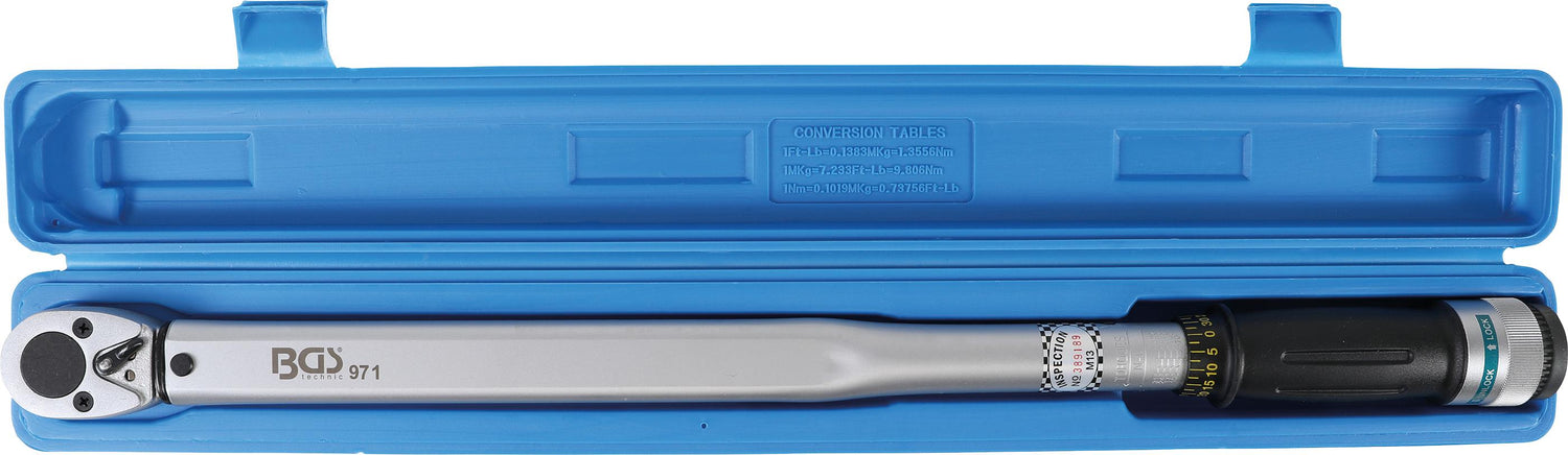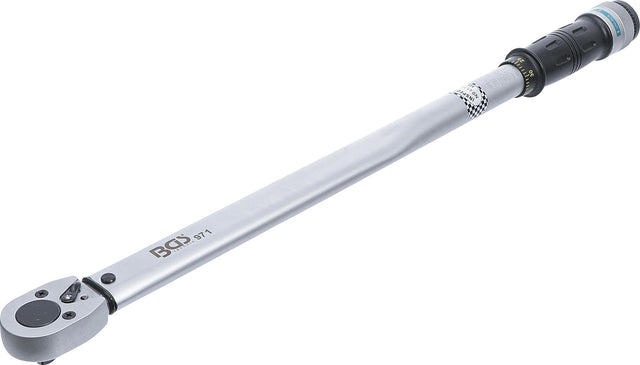 Dinamometrinis reversinis terkšlinis raktas BGS Technic 971 - tai PRO+ klasės įrankis, skirtas tiksliam sukimo momentui taikyti sukant varžtus ir veržles. Įrankis pagamintas iš tvirto chromo molibdeno [CrMo] įrankių plieno. Sukimo momentas fiksuojamas slankios įvorės pagalba. Dinamometrinis raktas pateikiamas tvirtame plastikiniame BGS Technic lagamine. Šis įrankis pateikiamas su kalibravimo sertifikatu.