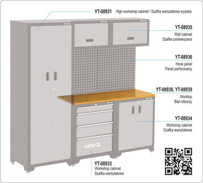 Medinio stalviršio YATO YT-08938 išoriniai matmenys 1320x457x25mm . Produktas pagamintas iš kaučiukmedžio, montuojamas ant 2 YATO dirbtuvių spintelių YT-08934 ir YT-08933.