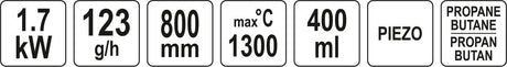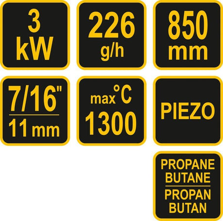 Dujinis degiklis 3 viename su aksesuarais | 1300º C (YT-36706)