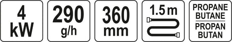 Dujinis degiklis su žarna ir antgaliais | 360 mm (YT-36730)