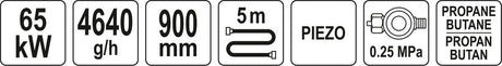 Dujinis degiklis su žarna | piezzo | 900 mm (YT-36741)