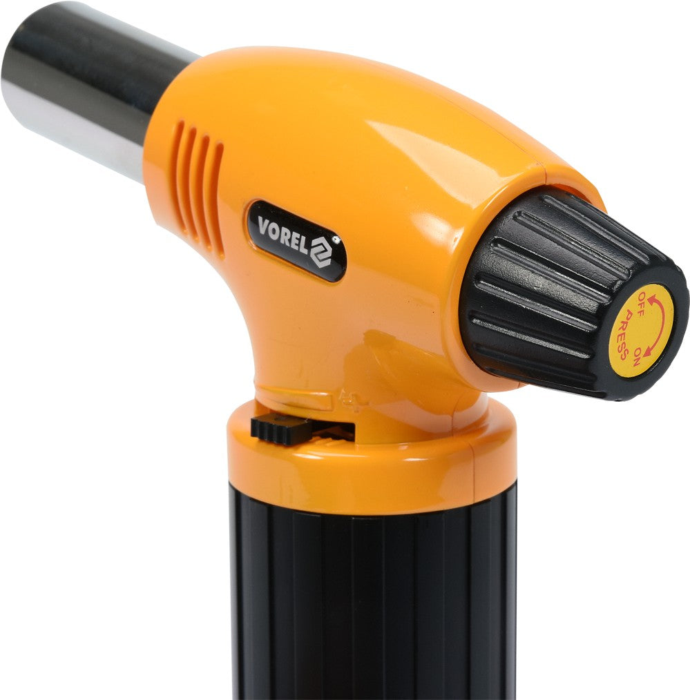 MAX TEMP. 1300C; POWER 2,842KW; GAS VOLUME: 8G; WEIGHT: 210G; FLAME ADJUSTMENT AT TOP; SAFE LOCK; WORKING ANGLE: 360C; ZINC BODY; CONTINUOUS WORKING TIME: 30MIN; TRIGGER START IGNITION